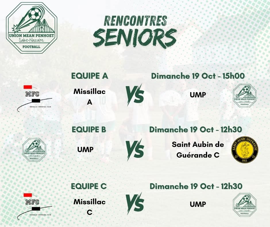 📅 Le programme de nos équipes pour ce week-end du 18 et 19 octobre 2025